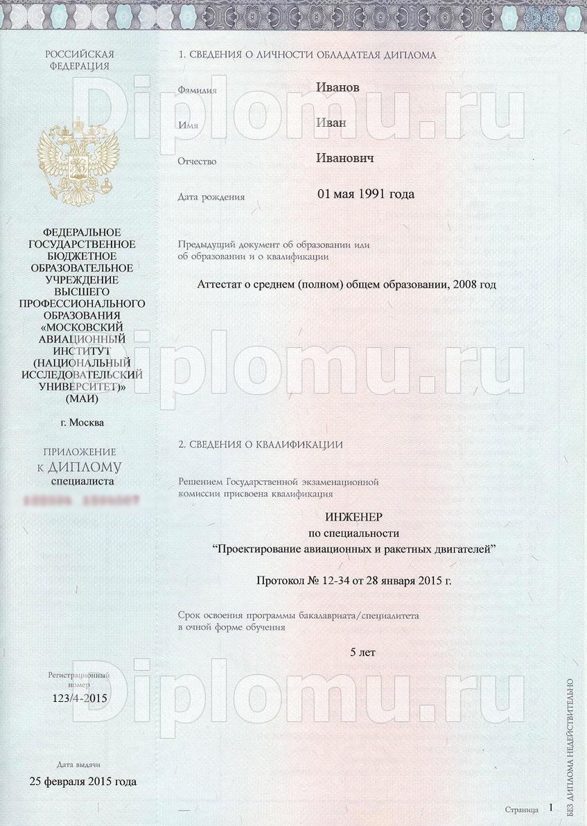 Все дипломы о высшем образовании, в частности дипломы нового образца, заполняются по стандартам, установленным соотвествующим приказом Минобрнауки РФ. Пример заполненного документа приведен ниже.